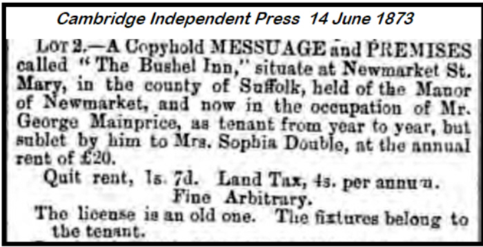 | 1960 Nov | tied lease (22 yrs tied £50 p.a.) on offer | " " | Newmarket Journal |