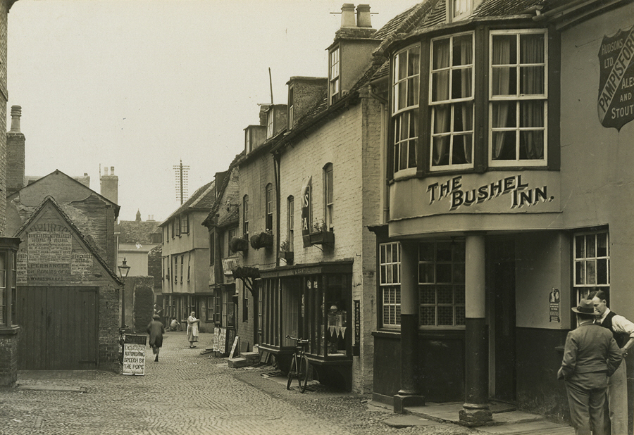 destroyed practically all on the St.Mary's side of the High Street, were the Bushel there then the current building must be a re-build.