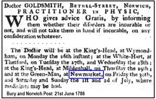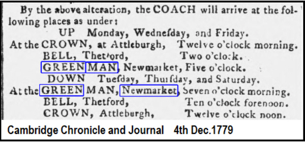 Thanks to research into medical practices in Newmarket by the author of www.talkingdust.net it now appears that there was an Inn called the Green Man. Its location was