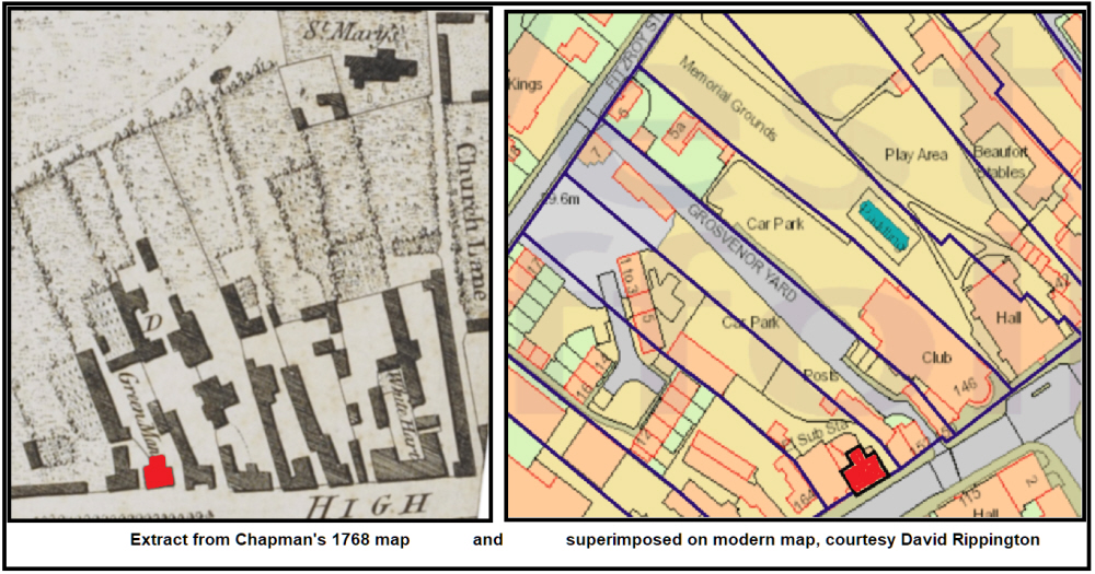 then located on the Chapman's map of 1768, courtesy David Rippngton. The current building is Ratcliffe House, premises (2019) of David Burr,