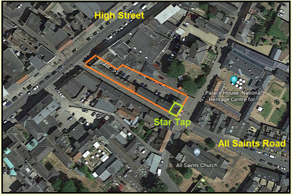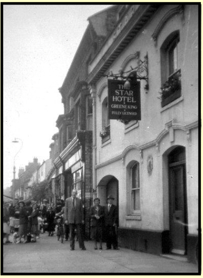 The yard was a much safer route than Sun Lane on your bike, from All Saints to the High Street, if the traffic was busy It was one of the pubs purchased, together with the Brewery from Harriet Moody in 1896. When Greene, King closed the 10 bedroom hotel in 1964 they changed it to one of their Peatling & Cawdron Wine Stores, eventually sold to Wine Rack and then to Pizza Express. The entire site was eventually redeveloped and now there are several retail outlets along Sun Lane. One of the few hotels with a Tap. These were basically beer bars, usually at the other end of a large hotel yard. The idea seemingly was to keep the "peasants" away from the hotel guests The Star Tap became a bookmakers, and in keeping with the trend, a coffee house in the latest re-incarnation (2019) More research is necessary on the latter years of this hotel |