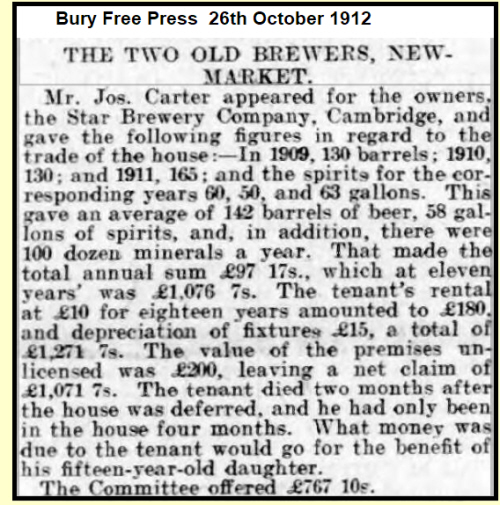 | 1913 | sold unlicensed | Newmarket Journal | |